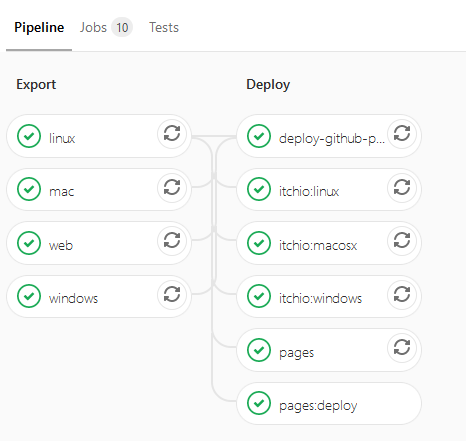 | GitLab CI | Godot Exports / GitHub Pages / GitLab Pages / Itch.io | GitLab CI Pipelines |
