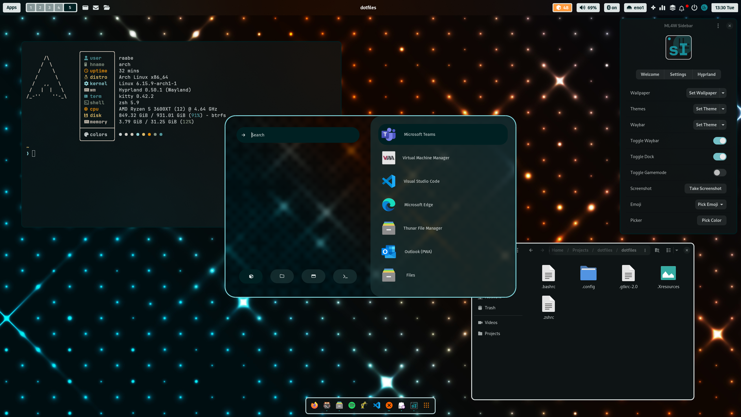 An advanced configuration of Hyprland for Arch linux based distributions. Full featured desktop environment based on the tiling window manager Hyprland with dynamic material color themes based on the selected wallpaper for all main modules. Including a comprehensive selection of apps with the ability to customize the configuration to your personal needs.