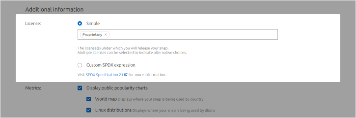 If you build proprietary software you can use the “Proprietary” license. For open source projects we support SPDX expressions so you can let your users know exactly what license your project uses.